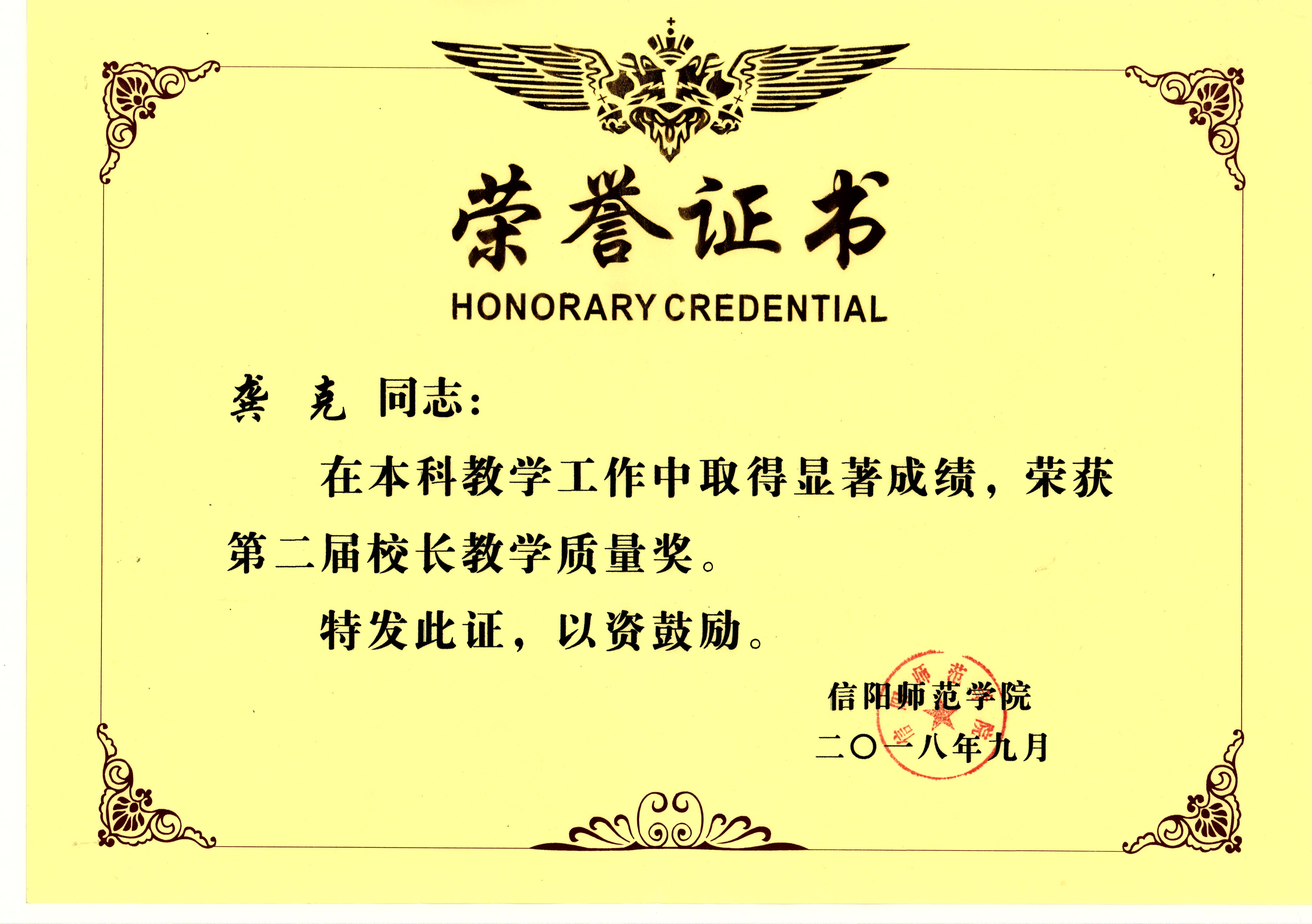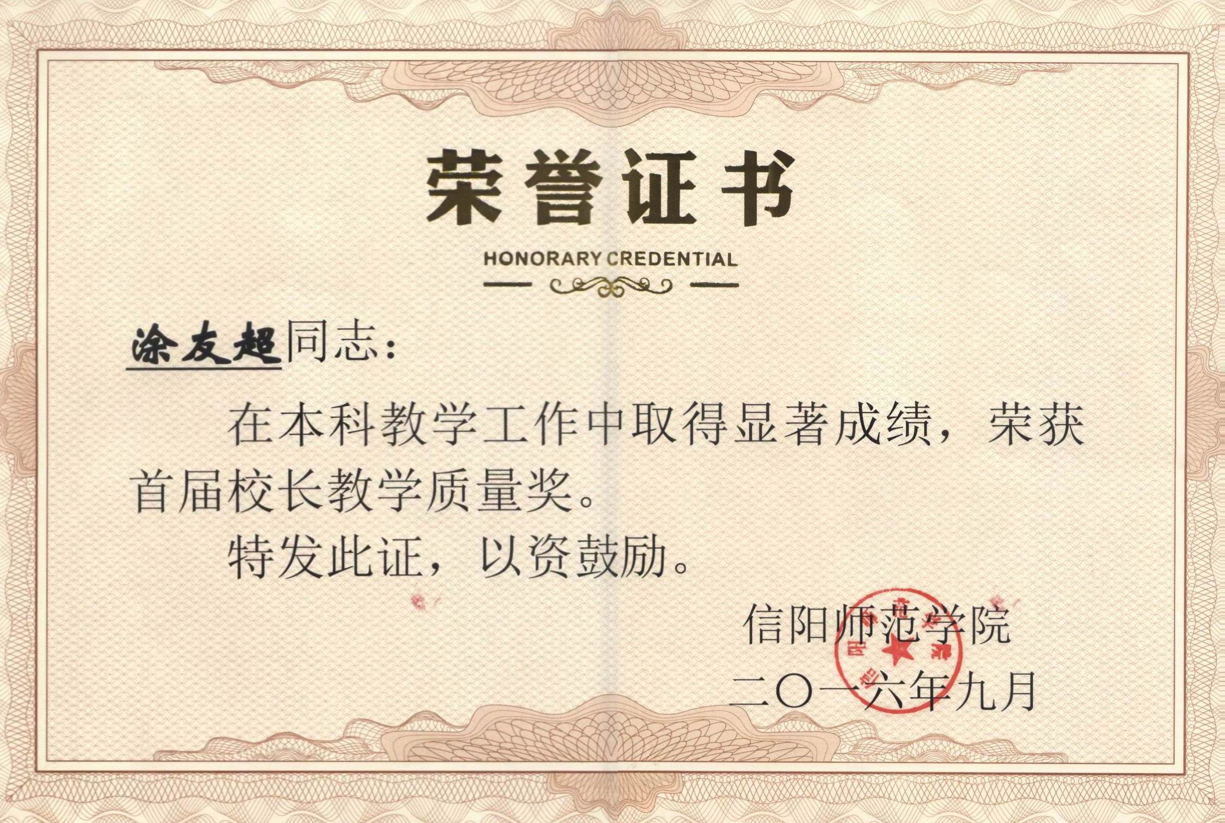| 董事长教学质量奖 | 涂友超、龚克、李存、张昆 |