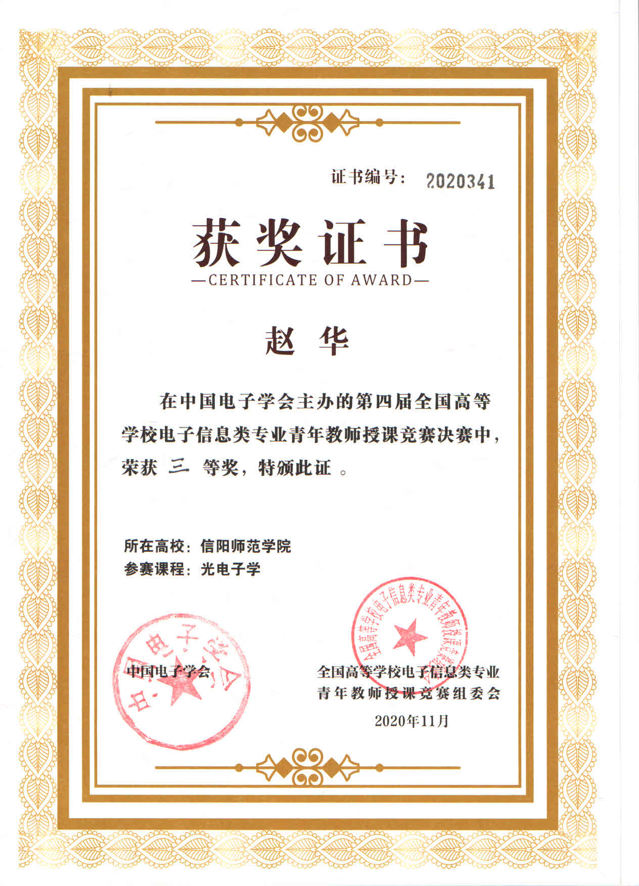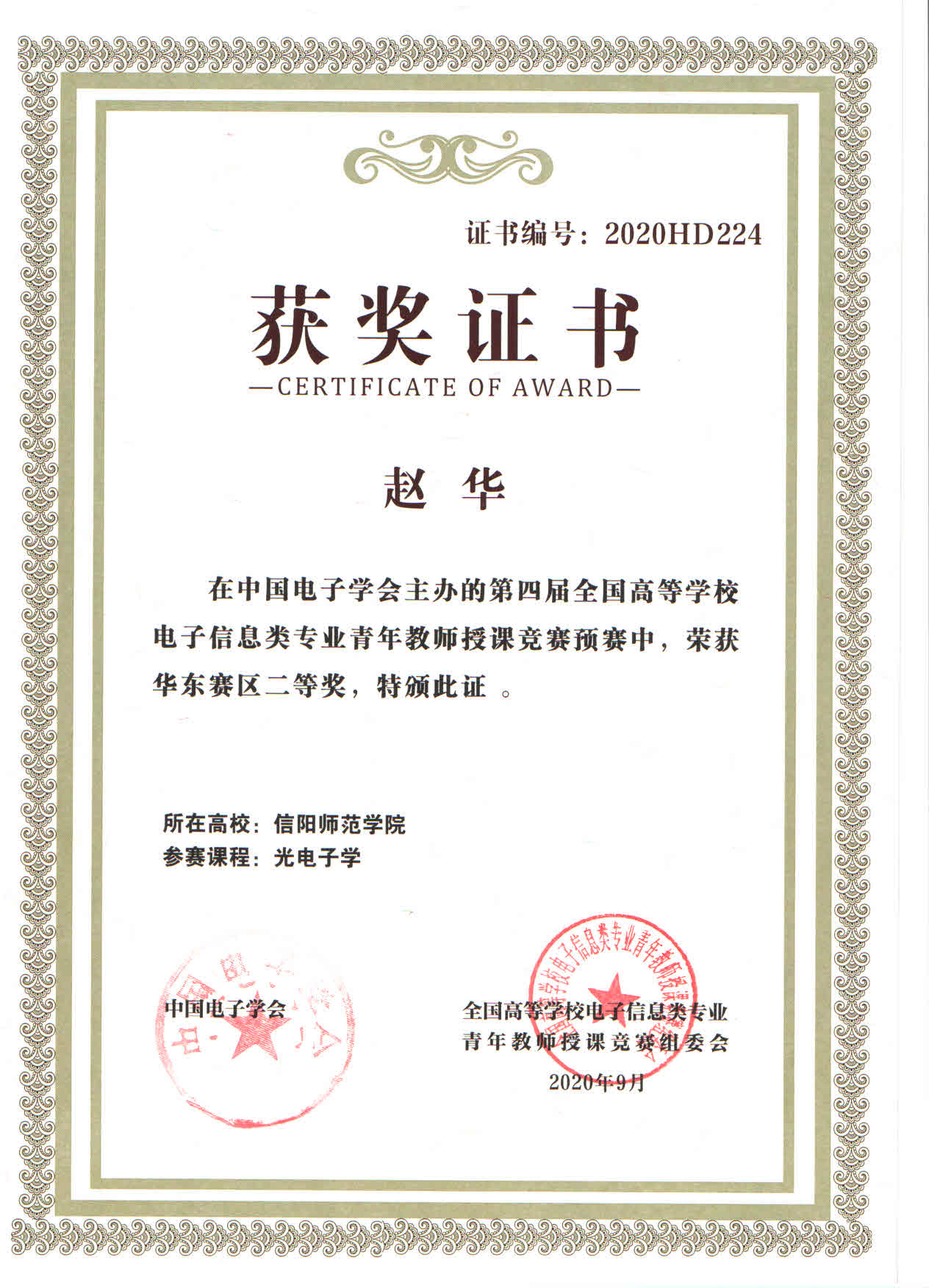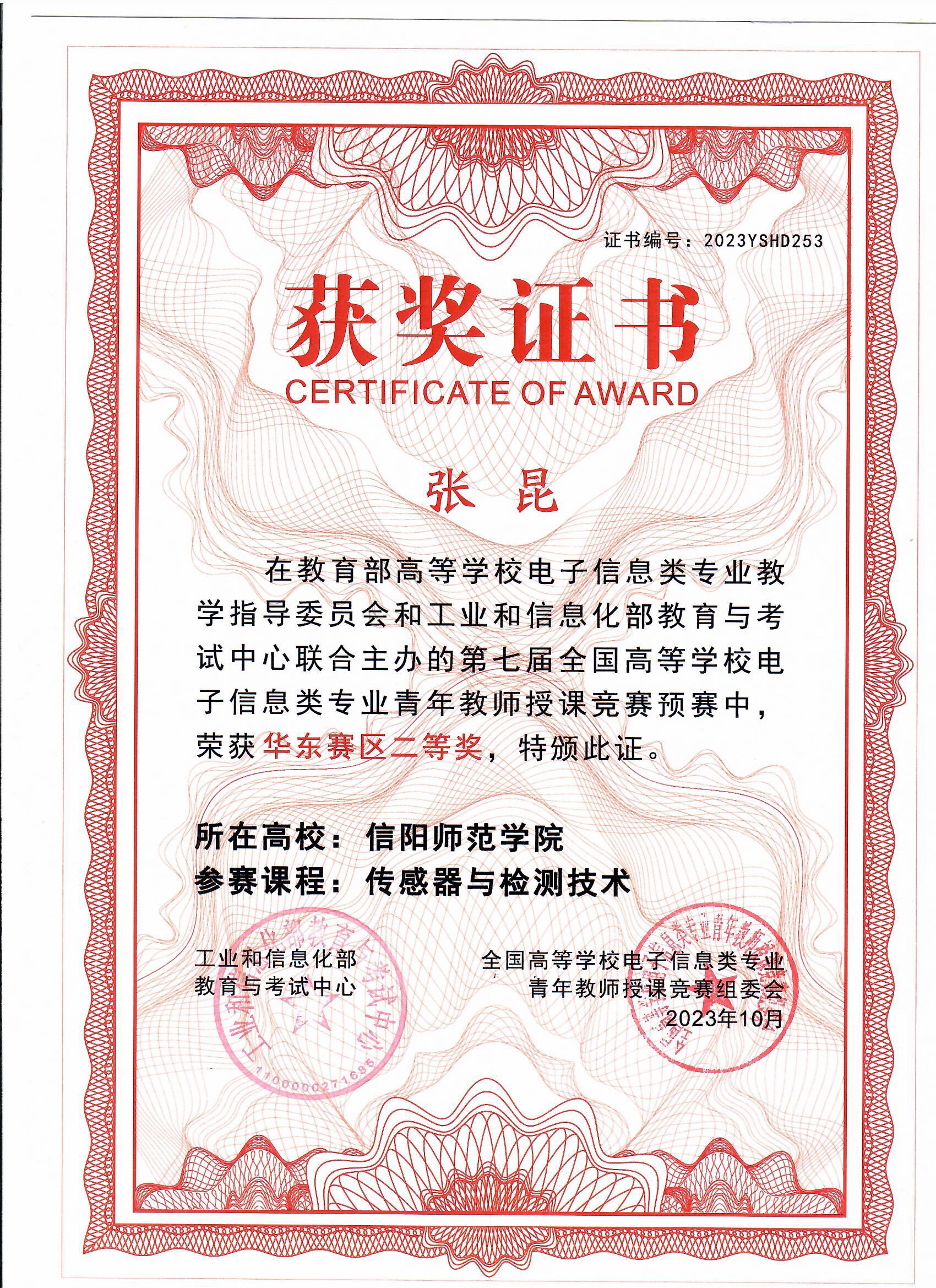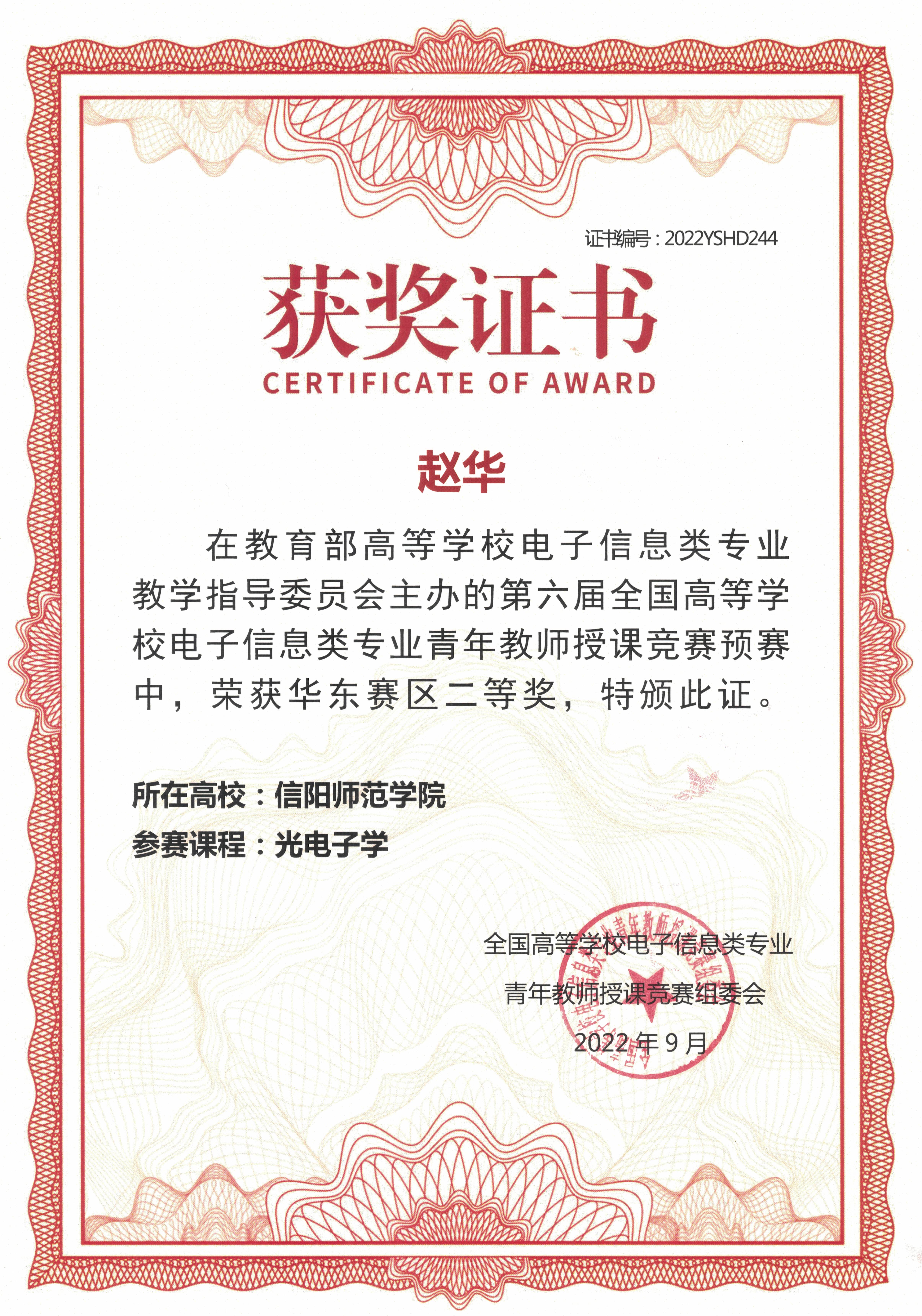| 其它奖项 | 2022-全国高等公司电子信息类专业青年教师授课竞赛-华东赛区二等奖-赵华 2023-全国高等公司电子信息类专业青年教师授课竞赛-华东赛区二等奖-张昆 |