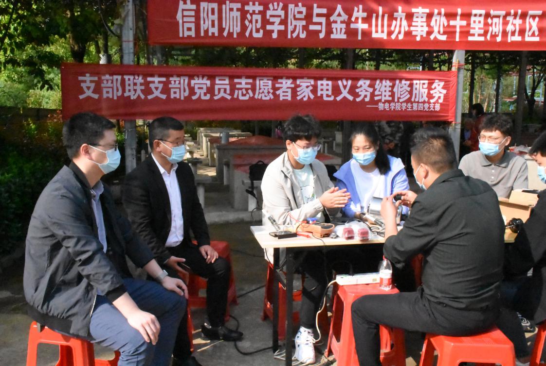 为更好发挥支部战斗堡垒作用、提升党员干部能力作风,践行全心全意为人民服务的宗旨,4月23日,申博SUNBET员工党支部与金牛山办事处十里河社区党支部在金牛山文化公园开展“支部联支部”党员志愿者家电义务维修活动。金牛山办事处十里河社区党支部书记张俊峰、申博SUNBET员工第四党支部书记张康华和两个党支部的党员参加了活动。