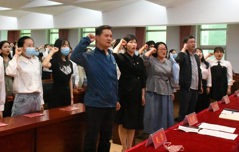 会议在庄严的国歌声中拉开帷幕。会上,公司为在去年五月份入党的毕业生党员颁发政治生日卡。政治生日卡上矗立着一座立体的南湖红船,卡片上印有入党誓词、党员姓名、入党日期、入党介绍人和党组织寄语。旨在勉励毕业生党员在未来的工作岗位上,牢记开天辟地、敢为人先,坚定理想、百折不挠,立党为公、忠诚为民的红船精神,不忘初心,不负韶华,为校增光,为国添彩。随后,由党委书记刘百超领誓,与会党员面向党旗,高举右拳重温入党誓词,大家神情庄重、声音铿锵。通过重温入党誓词,激励毕业生党员再一次体会到作为一名中国共产党员的责任感和使命感。毕业生党员代表杜聪聪在发言中表达了在即将开始的新征程中继续践行党的宗旨、坚守党员初心、履行党员义务的坚定信念。