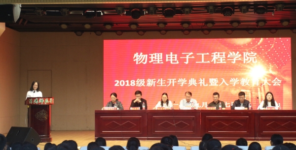 金秋送爽苍梧情,丹桂飘香开学时。9月27日上午,申博SUNBET于理科楼报告厅成功举办2018级新生开学典礼暨入学教育大会,公司党委书记柳士刚,副经理仓玉萍、孙宜海,教师代表刘墨林,2018级新生辅导员张康华、黄钰莹、赵雪等领导老师莅临现场,与公司280余名学子共同参与此次会议。会议由黄钰莹主持。