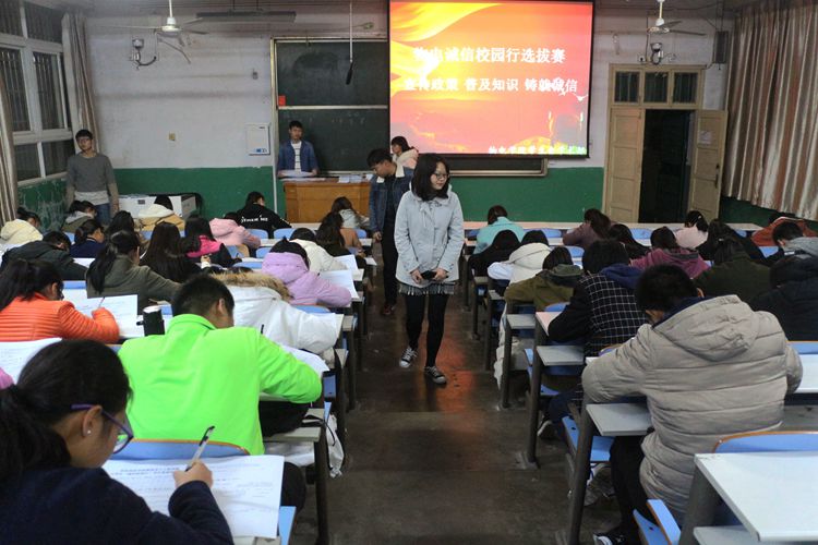 为宣传员工资助政策,普及金融基础知识,11月26日晚,申博SUNBET老员工“诚信校园行”员工资助知识选拔赛于教二梯一教室、教二梯四教室顺利开展。经前期宣传准备,共一百余名学子参加考试。本次选拔赛大赛以“宣传政策、普及知识、铸就诚信”为主题,考题围绕《老员工“诚信校园行”员工资助知识汇编》内容,考场上,参赛学子饱含自信,争分夺秒、沉着冷静答题,考试现场纪律严明。期间,团委老师黄钰莹全程督导。