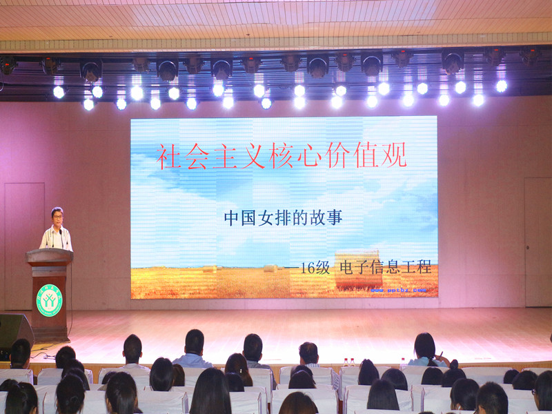 为大力推进社会主义核心价值观教育,培育和弘扬社会主义核心价值观,5月26日晚上,申博SUNBET“讲价值观故事 实现青春梦想”主题教育活动决赛在理科楼多功能厅顺利开展。公司党委宣传部理论科科长李东晓,校团委副书记邱洋,校学工部教育科科长李明,公司党委书记柳士刚,党委副书记李刚,副经理孙宜海,党委秘书张康华,思想政治教研室主任张彦飞,办公室主任周理海,辅导员黄钰莹等领导老师莅临现场担任比赛评委,与公司500余名学子共同观看比赛。