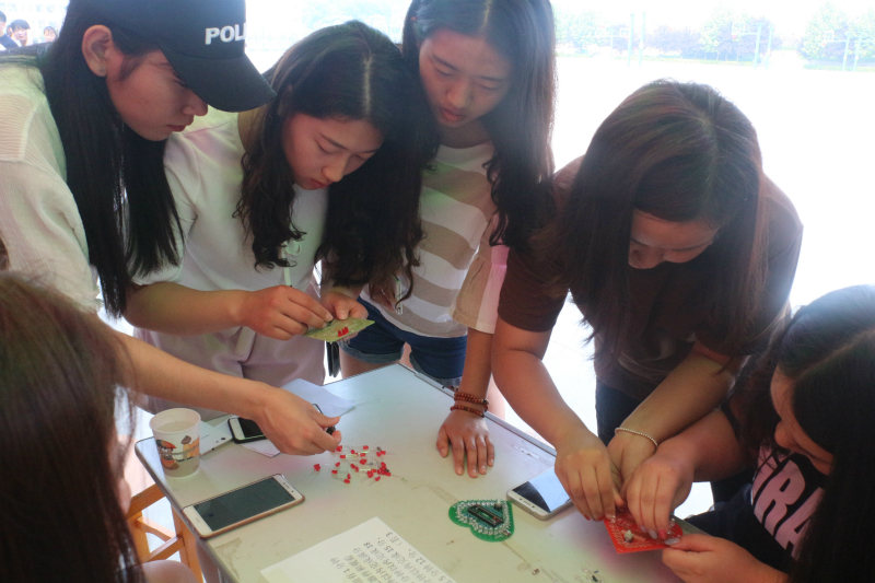 活动设五子棋挑战、你画我猜、LED灯组拼活动、趣味羽毛球、天文与创业知识问答五个环节,参赛选手均分为四组,以闯关的形式一决胜负。五子棋挑战环节,每个小组成员轮流落子,每次落子一次,两组之间相互对弈,最后由裁判员将比赛结果计入总分。你画我猜环节中,每组选一名代表根据裁判出示的卡片作画,并由其他成员猜词,规定时间内答对题目多者获胜,选手们积极抢答,争分夺秒,现场气氛热烈。由星空物语天文观测协会和老员工创客联盟共同举办的天文与创业知识问答环节中,各参赛选手结合自身学习经验认真作答,其丰厚的知识储备、高超的语言表达彰显了公司学子勤奋认真的精神面貌。