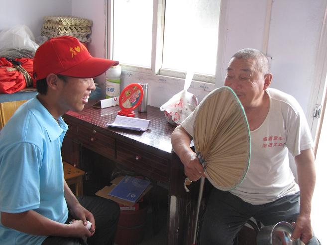 在当地村委书记的带领下,实践服务团带着慰问品来到了陈荣周老人的家中。当志愿者与陈荣周老人谈及建国60多年来,新中国发生的翻天覆地的变化时,他激动地拉住志愿者的手,动情地说:“共产党好啊!给我房子住,把家用电器也备齐了,吃得饱穿得暖,现在党还不忘我这个老骨头”。随后,陈荣周老人还向师生们讲述了自己父亲在解放战争中的光荣事迹。作为一名游击队队长,陈老的父亲带领游击队队员,在那个动荡的年代,英勇反抗敌人,从不畏惧,为祖国的革命事业奉献了生命。现场的一位志愿者更是激动地说:“陈老的话,让我知道了革命老一辈经历的艰辛与曲折。我们今天的幸福生活来之不易,是革命前辈们用生命换来的。作为当代老员工,我们一定要继承和弘扬革命前辈们艰苦奋斗的精神,努力学习,用所学知识服务于人民,服务于社会。”