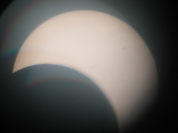 一大早,该协会成员就来到东操场开始为观测活动做准备。他们先找到合适的位置,之后摆好天文望远镜及有关设备。六点,日食开始出现,太阳如月牙般悬于天空。随后,日食时隐时现,变化多端。七点时,日食光线逐渐变得强烈,肉眼难以观看。在观测的同时,该协会人员还向在场同学讲解了日食形成的原因和观测方法,不仅让同学们知其然,而且知其所以然,极大的满足了同学们的好奇心。