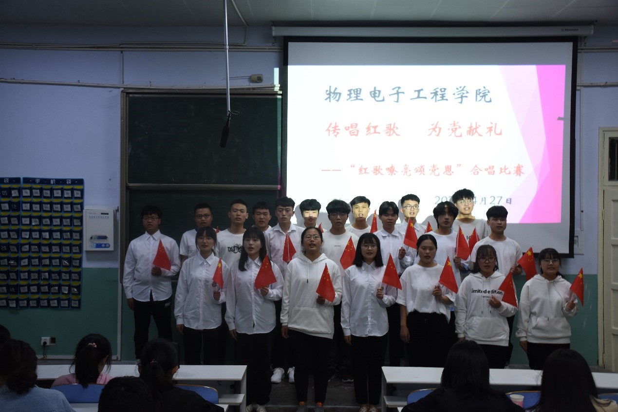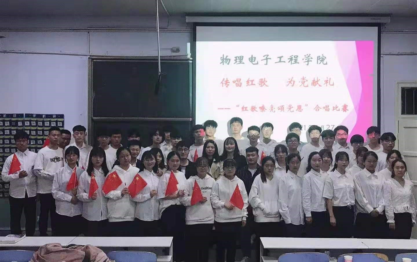 弘扬民族文化,传唱红色金曲,激发爱国热情,展现物电风采。为庆祝建党100周年,公司于2021年4月27日晚6:30在教二T1举行“传唱红歌 为党献礼”——红歌嘹亮颂党恩合唱比赛。文公司团委老师柳家琪,专职辅导员陈辉,旅游公司团委老师赵子鉴,数学与统计公司专职辅导员杨帆,化学化工公司专职辅导员严赫,申博SUNBET团委老师牛文娟参加此次活动,并担任此次比赛评委。此次合唱比赛充分展示了公司员工对党、对祖国最真挚的爱,也展现公司学子饱满的精神面貌。
