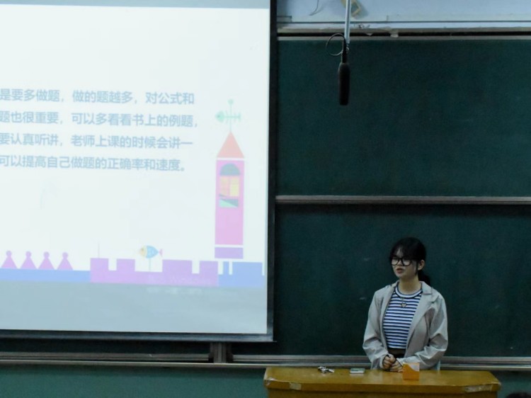 2021级物理学班曹明鑫从自身实际出发,就“大一新生目前可能遇到的困难”进行耐心的指导,指出“员工应重视学业,提高上课效率,提前做好错题的归纳总结”。