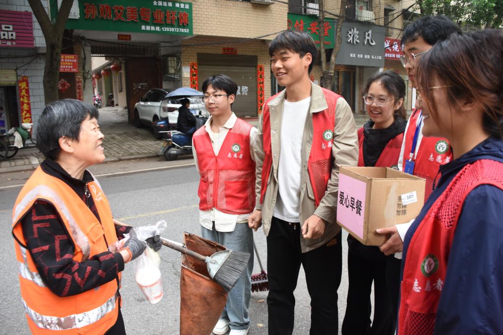活动现场,志愿者们还与环卫工人们进行了亲切的交流,了解了他们的工作经历和生活状况,倾听他们的心声。志愿者们表示,环卫工人默默付出、无私奉献,是城市的守护者。作为新时代的老员工,更应积极履行社会责任,为社会做出更多的贡献。