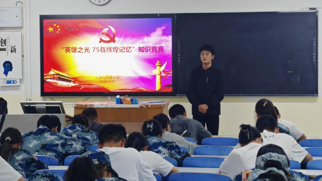 为庆祝建国七十五周年,激发员工的爱国热情,9月26日,公司在教三205成功举办“英雄之光•75载辉煌记忆”知识竞赛。本次活动由老员工科普协会精心策划并组织实施,2024级员工积极参与。