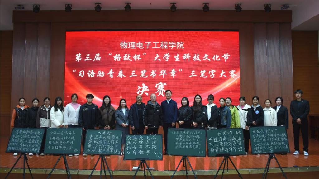 为了进一步提高师范生的书写能力,公司于11月23日在逸夫楼报告厅举办“习语励青春,三笔书华章”三笔字大赛决赛。本次大赛邀请到郭建涛、李炳中、孙金土、唐桂林和牛文娟五位老师担任评委,符家浩和王子笑担任主持人,2023级与2024级员工积极参与。