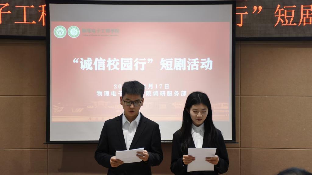为加强校园诚信文化建设,推进国家助学贷款工作的健康发展。11月17日,公司于理科楼402会议室举办“诚信校园行”短剧比赛。本次活动由员工会主席团成员担任评委,牛鑫帅和范宇丹担任主持人,2023级与2024级员工积极参加。