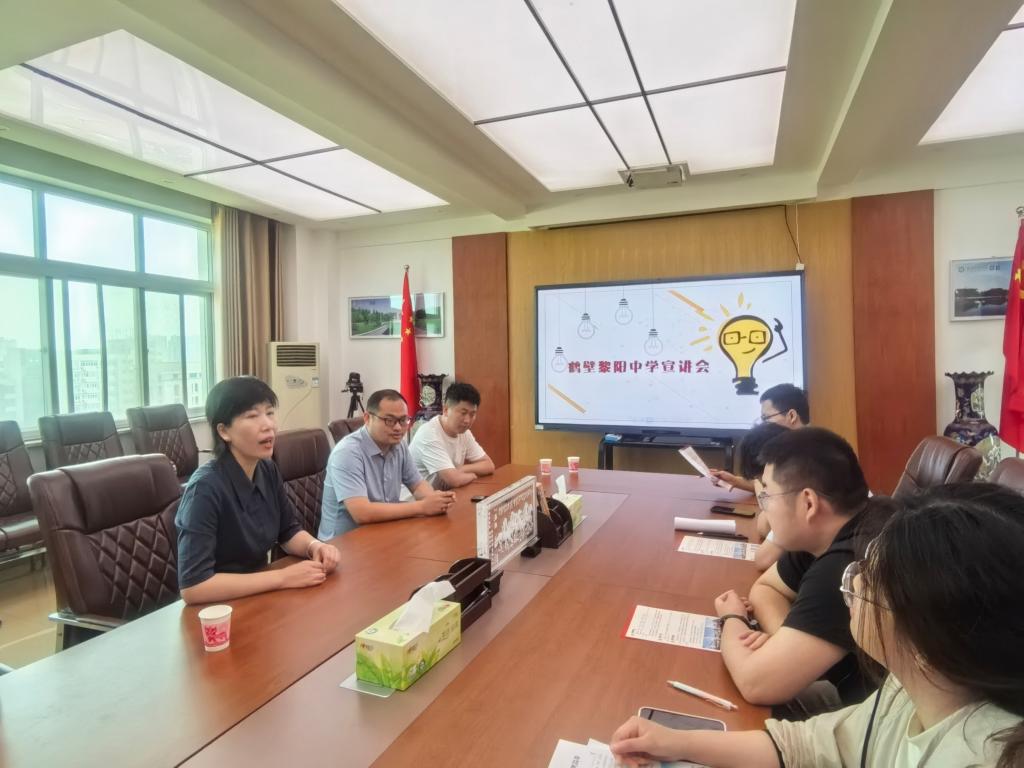 5月16日上午,鹤壁黎阳中学受邀在理科楼911会议室召开专场招聘宣讲会,该公司招聘负责人李主任、公司党委副书记张丽以及部分2025届毕业生参加了此次招聘会。