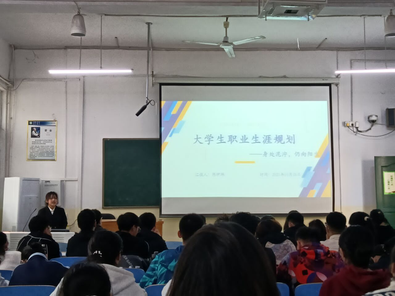 2021年10月28日中午,公司在教三楼02教室举行2021年老员工职业生涯规划大赛决赛,思想政治教育与就业指导教研室主任张彦飞和在2020年公司老员工职业生涯规划大赛中获奖的魏雪桐、孙琰博、崔宏担任评委,2021级新生参加观摩学习。