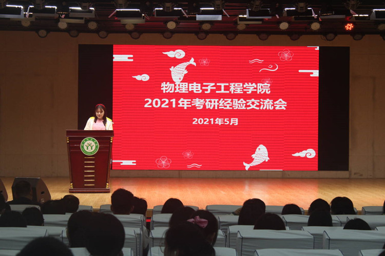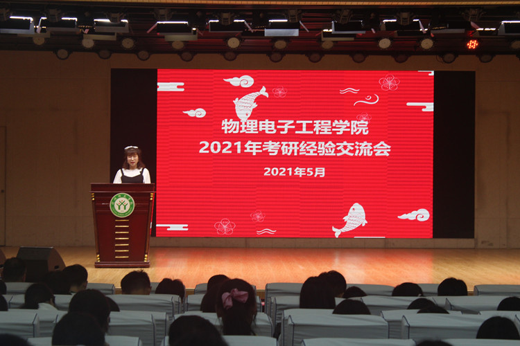 三名优秀员工代表结合自身考研经历依次向在场师生分享考研经验及心得体会。2017级物理学班谢润涵从院校选择、初试备考、复试备考三个方面讲述自身考研经历,并建议学子们应根据自身优势,认真分析,谨慎挑选考研公司及专业。2017级电子科学与技术班刘续以自身考研经历为基础,强调竞赛考试对考研的重要性,学科学习应根据自身情况寻找合适的学习方法,注重知识理解,重视真题练习,不断巩固。2017级应用物理学班张婉婉从考研心态、初试、复试准备等方面阐述自身经验及体会,建议学子们要坚持自己的复习计划,多肯定自我,鼓励自己,坚持不懈。