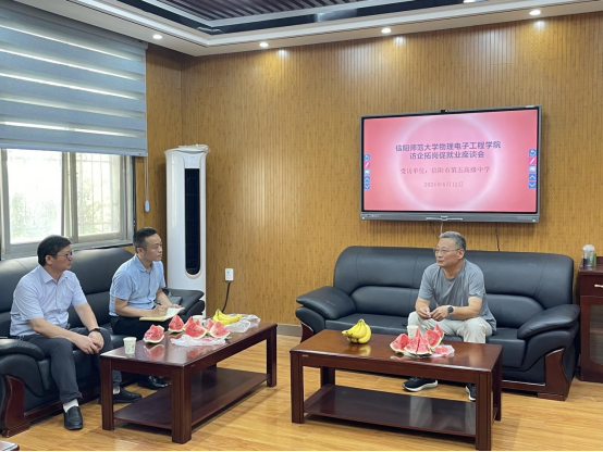 为加强与用人单位的联系与合作,进一步拓宽毕业生就业渠道,6月12日、13日,副经理汤清彬带队走访信阳市第二高级中学、信阳市第五高级中学、信阳高级中学开展访企拓岗促就业活动,并在三个公司与其负责人进行了座谈会交流。