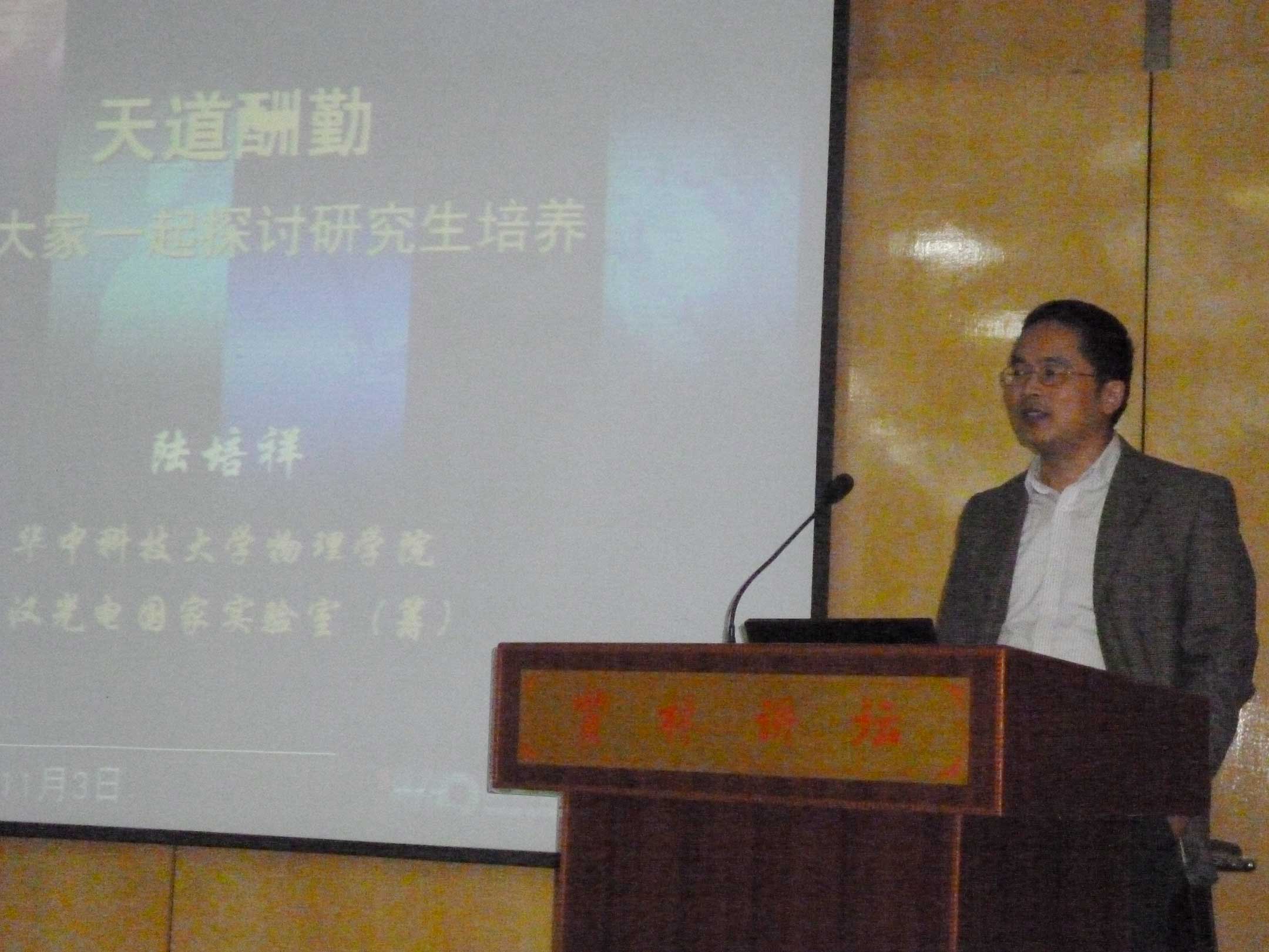 陆培祥,男,博士生导师。教育部长江学者特聘教授,国家杰出青年科学基金获得者,享受政府特殊津贴,国家自然科学基金委员会数理学部学科评审组专家,科技部国际科技合作项目评审专家,中国光学学会理事、激光专业委员会副主任,武汉欧美同学会副会长。1987年毕业于北京大学物理系,1992年在中科院上海光机所获得理学光学博士学位。1995-1996年,获洪堡奖学金在德国马普量子光学研究所工作;1997年获日本科技厅奖学金在日本电子综合技术研究所工作;1998-1999年在日本NTT基础研究所工作;2000-2002年在日本原子能研究所光量子科学研究中心任客座研究员;2000年入选中科院“引进国外杰出人才”计划(百人计划)任上海光机所研究员,博士生导师;现任武汉光电国家实验室(筹)激光科学与技术研究部筹备组组长,华中科技大学激光技术国家重点实验室主任,华中科技大学物理公司经理。