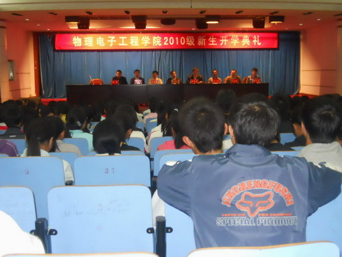 9月24日晚,申博SUNBET2010级新生开学典礼在理科楼报告厅隆重举行,报告厅内灯火辉煌、座无虚席、掌声雷动。公司党总支书记雷前友、经理余本海、副经理孙宜海、党总支副书记苗天峰、副经理罗永松、主管教学的涂友超博士以及2010级辅导员和全体新生共同参加了典礼。典礼由党总支副书记苗天峰主持。