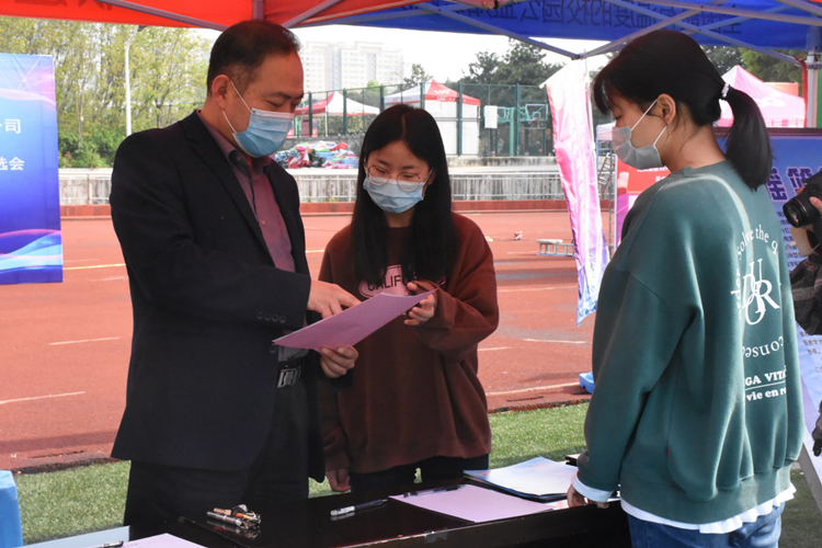 4月10日,由河南省教育厅主办,申博SUNBET承办的“河南毕业生就业市场豫南分市场暨申博SUNBET2021届毕业生线下春季双选会”在公司西操场举行。公司党委副书记李刚、2021届毕业班班主任张彦飞前往现场为应聘毕业生提供就业指导。