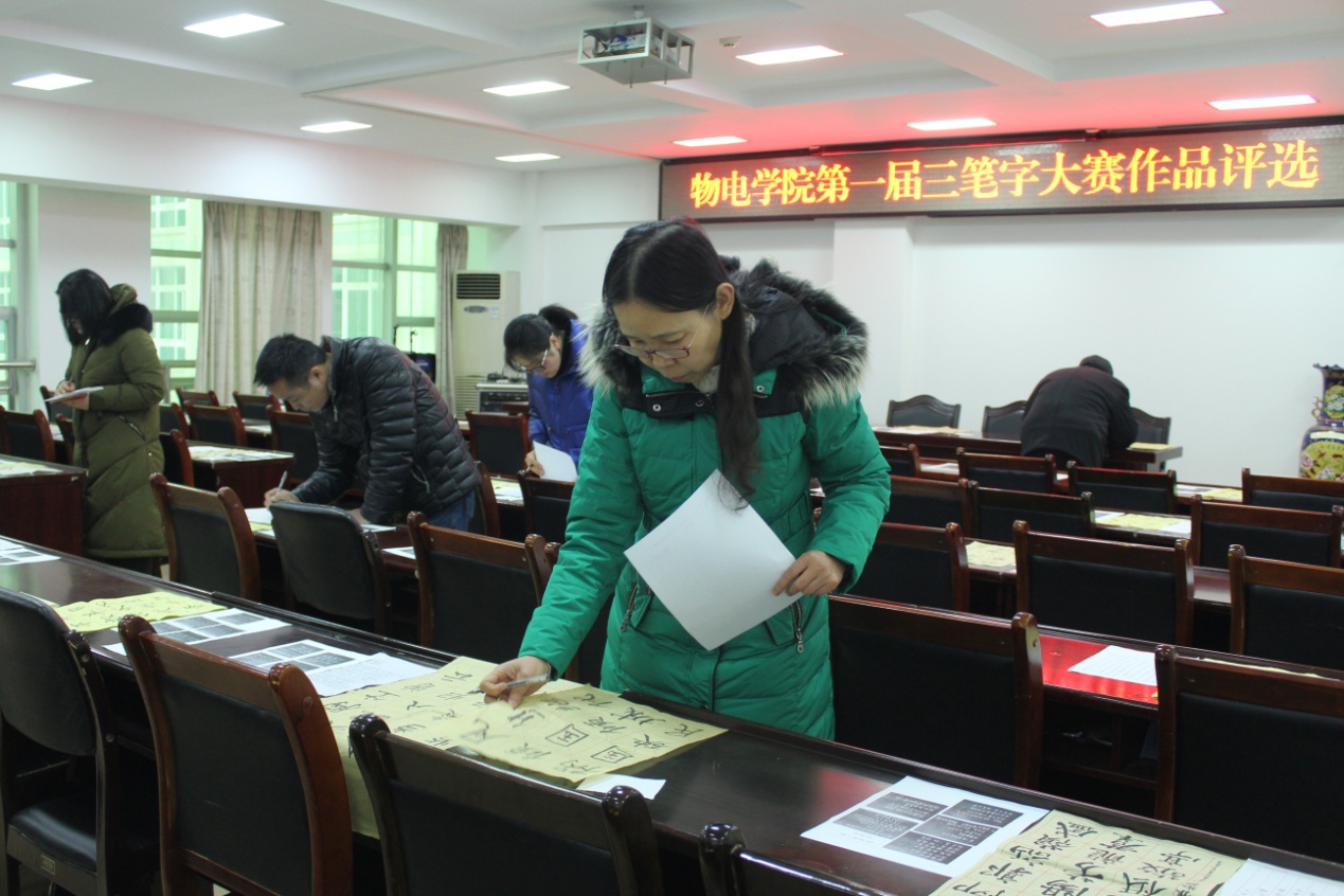 12月17日下午,公司于理科楼连廊会议室开展“三笔字”作品复评活动,申博SUNBET本科教学指导与管理委员会、分团委老师和员工代表等10位同志担任本次大赛的评委。大赛共收到参赛作品230余件,经初赛遴选出了50套获奖作品。复赛现场,评委们重点从“三笔字”的间架结构、章法布局、规范和美观等方面进行综合评审,经过激烈角逐,共评选出一等奖5名,二等奖10名,三等奖15名,优秀奖20名。获奖作品在申博SUNBET办公区展出,并在公司教师教育文化节中参加相关赛事的角逐。