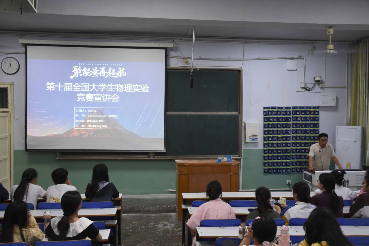 为进一步激发公司老员工对物理实验的学习热情,挖掘其学习潜能。4月26日,公司于教二T4举办“第十届全国老员工物理实验竞赛”宣讲会。此次宣讲会由李方涛老师主讲,2022级物理学部分同学参加。