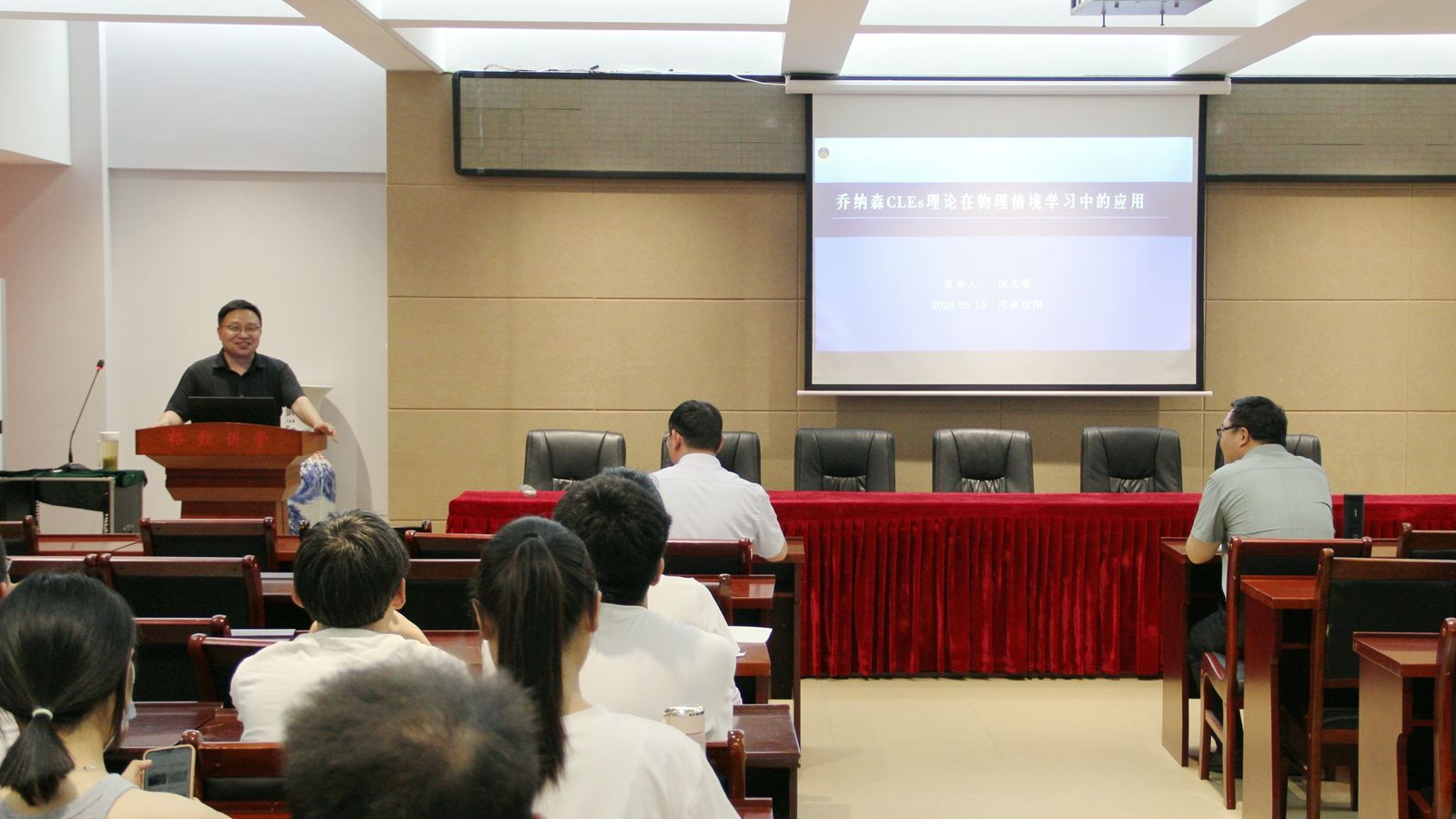 5月18日下午,应公司邀请,安徽师范大学汪志荣教授在理科楼四楼连廊会议室作了题为“乔纳森CLEs理论在物理情境学习中的应用”的学术报告。报告会由张新伟博士主持,部分教师、研究生及本科生聆听了报告。