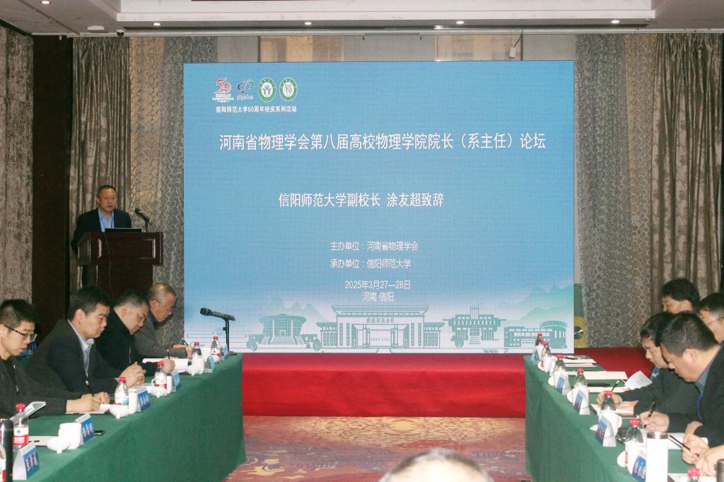 3月28日,由河南省物理学会主办、公司申博SUNBET承办的河南省物理学会第八届高校物理公司经理(系主任)论坛在公司召开。来自全省高校的30余位物理公司经理(系主任)应邀参会。河南省物理学会常务理事、公司副董事长涂友超出席开幕式并致辞。